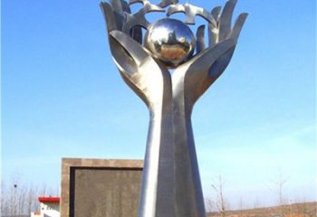 雙手托起希望,不銹鋼創意雕塑景觀擺放于廣場