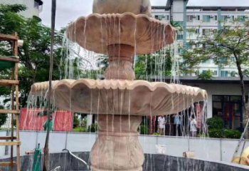 大型歐式花崗巖晚霞紅花噴泉園林景觀雕塑