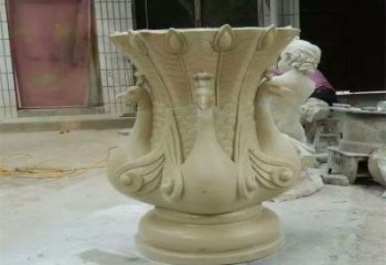 石雕孔雀歐式花盆,讓你的小區(qū)別墅園林更添精致