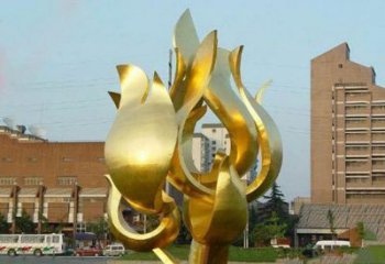 城市荷花雕塑精致不銹鋼鍍金噴漆抽象裝飾品