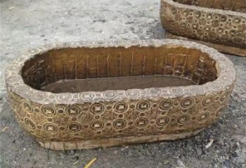 大理石種花養魚石槽雕塑