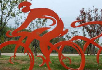 不銹鋼彩繪騎自行車人物雕塑