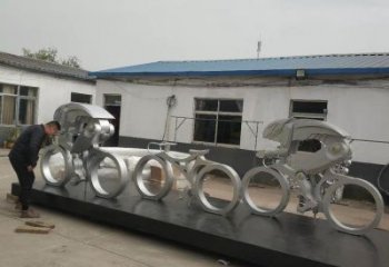 不銹鋼幾何抽象戶外園林騎行人物景觀裝置