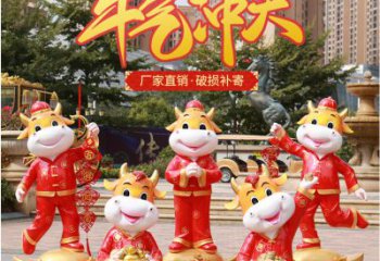 商場紅色雕塑,牛氣沖天!