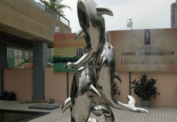 寫字樓里的海豚,精美的銅雕展示動物精神