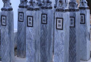 這組雕塑是青石材質(zhì)的十二生肖拴馬樁。每根樁柱頂端雕刻著形態(tài)各異的生肖動物,樁身刻有對應生肖文字。將實用的拴馬樁功能與傳統(tǒng)的十二生肖文化相結合,以石雕技藝呈現(xiàn),古樸中透著靈動,展現(xiàn)傳統(tǒng)雕塑之美。
